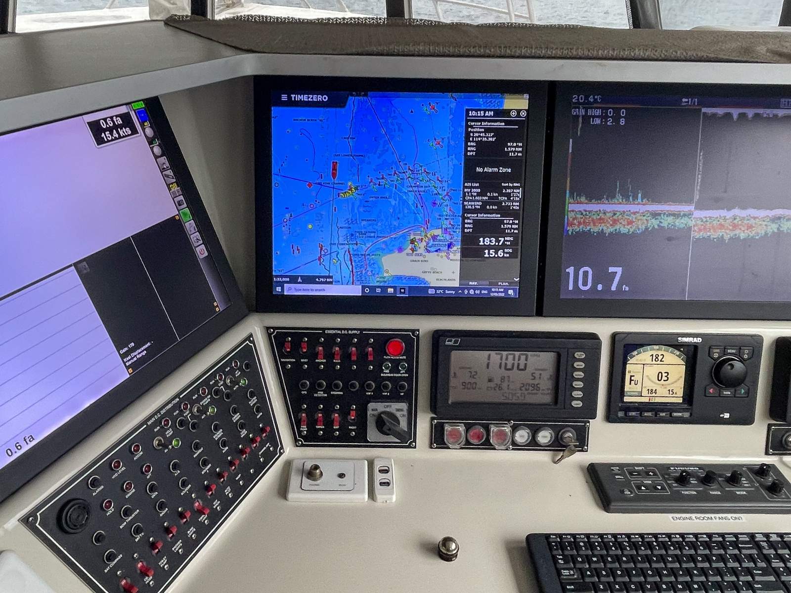 Powered by twin MTU 8V 2000 engines and supported by dual Kohler 30 kVA generators, the vessel comfortably runs all onboard systems and guest amenities. A comprehensive Furuno electronics suite with MaxSea TimeZero, VHF and SSB radios ensures professional-grade navigation and communication, while an electric bow thruster enhances control during close-quarters manoeuvring. Starlink WiFi keeps guests and crew connected throughout extended operations.